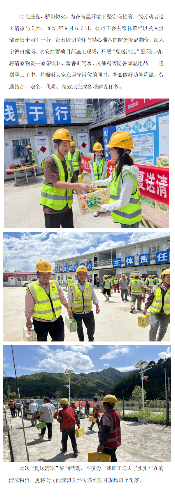 工会情系一线 夏日清凉沁人心--公司工会开展“夏送清凉”慰问活动